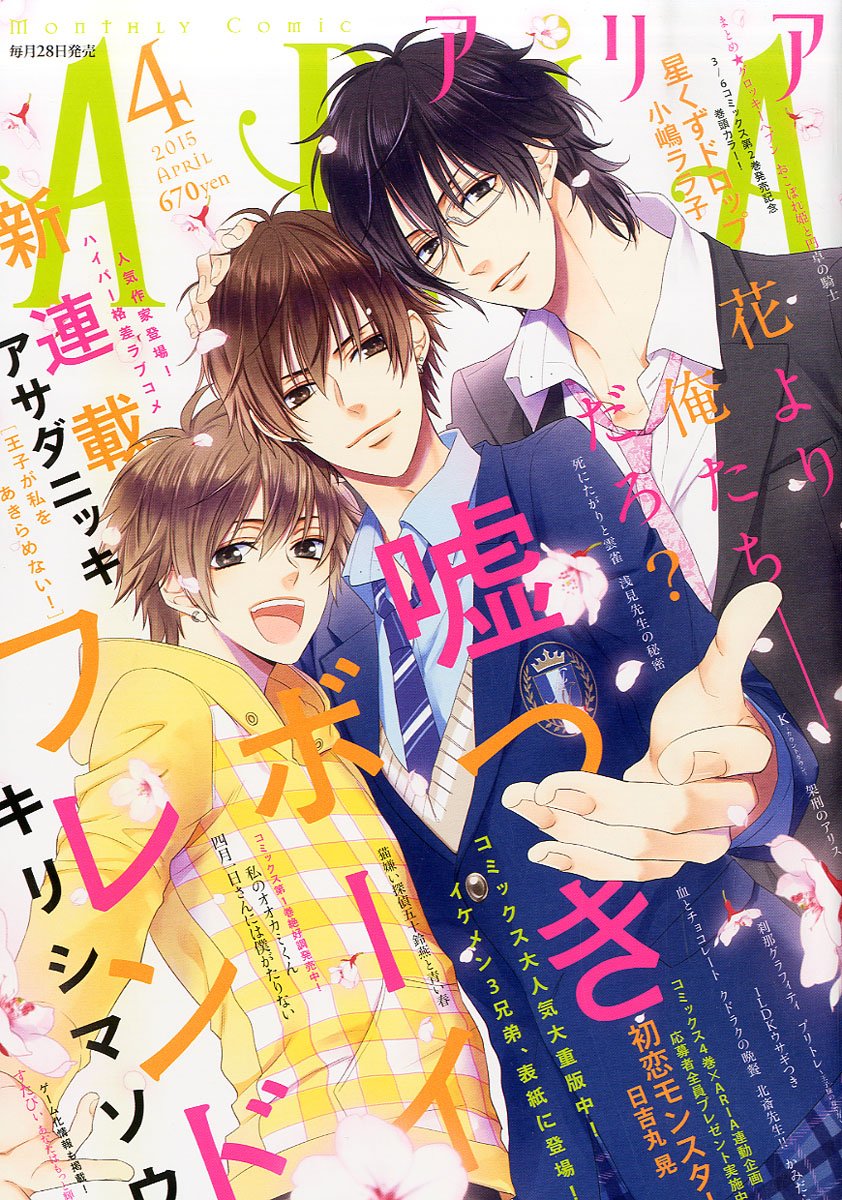 | ARIA là một tạp chí manga dành cho thiếu nữ ("shōjo") của Nhật Bản do nhà xuất bản Kōdansha phát hành định kỳ hàng tháng. Vào tháng 4 năm 2010, một thông báo công khai đã được vạch ra nhằm định hướng kế hoạch xây dựng tờ tạp chí mới này; ấn bản đầu tiên đã được ra mắt vào ngày 28 tháng 7 năm 2010. Các trang tạp chí được in theo cỡ giấy B5. Đối tượng độc giả chủ yếu là những thiếu nữ vị thành niên trong độ tuổi từ 16 đến 22. Vào năm 2013, Kodansha đã tạm thời tăng số lượng bản in của Aria lên khoảng 500% lên khoảng 80.000 bản do nhu cầu về chương mở đầu của phần ngoại truyện Attack on Titan: No Regrets, được xuất bản trước khi bắt đầu xuất bản. Thông báo vào ngày 27 tháng 3 rằng Tạp chí sẽ ngừng xuất bản vào ngày 28 tháng 4 năm 2018, vì hầu hết các bộ truyện sẽ được chuyển sang ứng dụng mới của Kodansha là Palcy. |