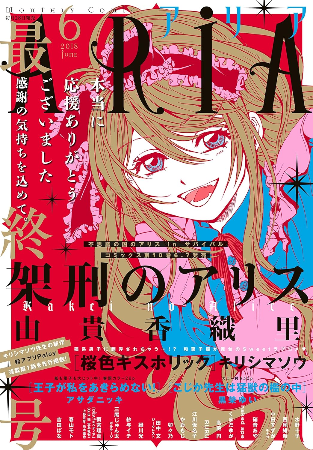 In 2013, Kodansha temporarily increased Aria's print count by roughly 500% to approximately 80,000 copies because of the demand for the prologue chapter of the Attack on Titan spin-off Attack on Titan: No Regrets, which was published before the serialization began. It was announced on March 27 that the Magazine would cease its publication on April 28, 2018, as most of the series would be moved to Kodansha's new app Palcy.